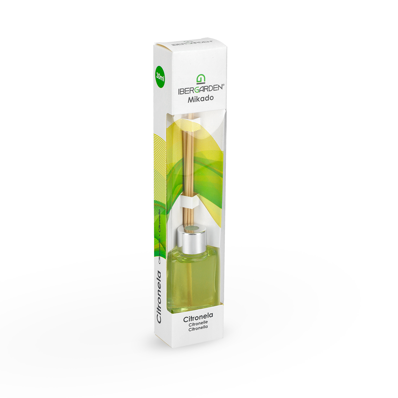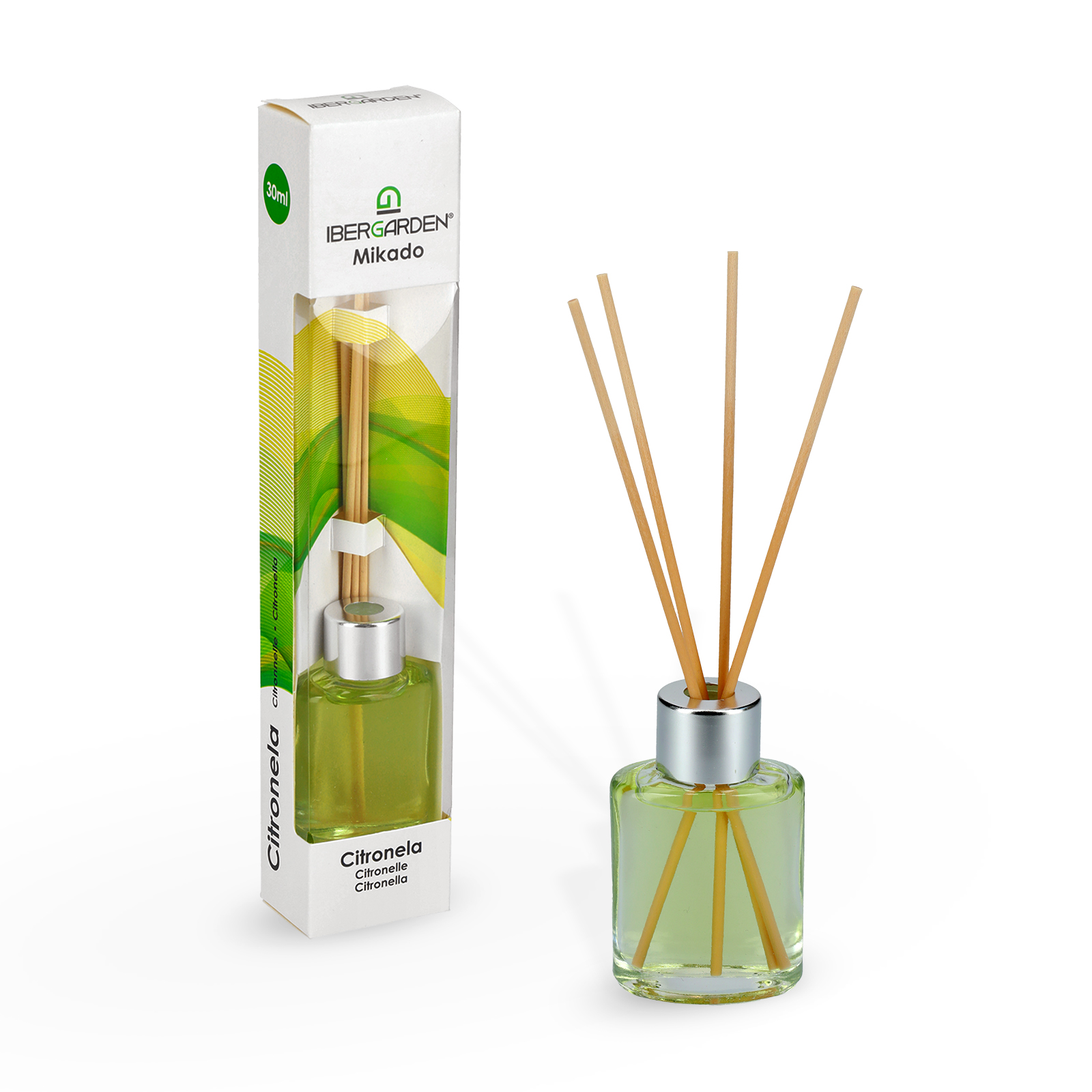 O Ambientador Anti-Mosquitos Mikado é um difusor que utiliza óleo de citronela, reconhecido pelas suas propriedades repelentes. As varetas absorvem o óleo e libertam gradualmente a fragrância no ar, mantendo mosquitos e outros insetos voadores afastados. Além da proteção, oferece um toque aromático suave que torna o ambiente mais agradável e acolhedor, sem impacto negativo na saúde.