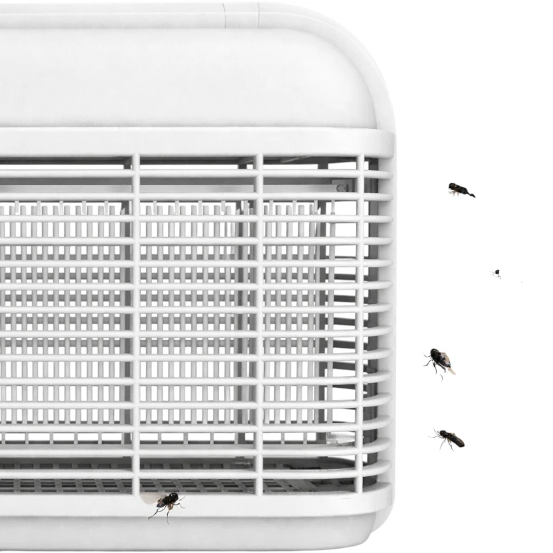 Sistema de eliminação por choque elétrico, eficaz contra mosquitos e moscas, sem químicos nem odores.